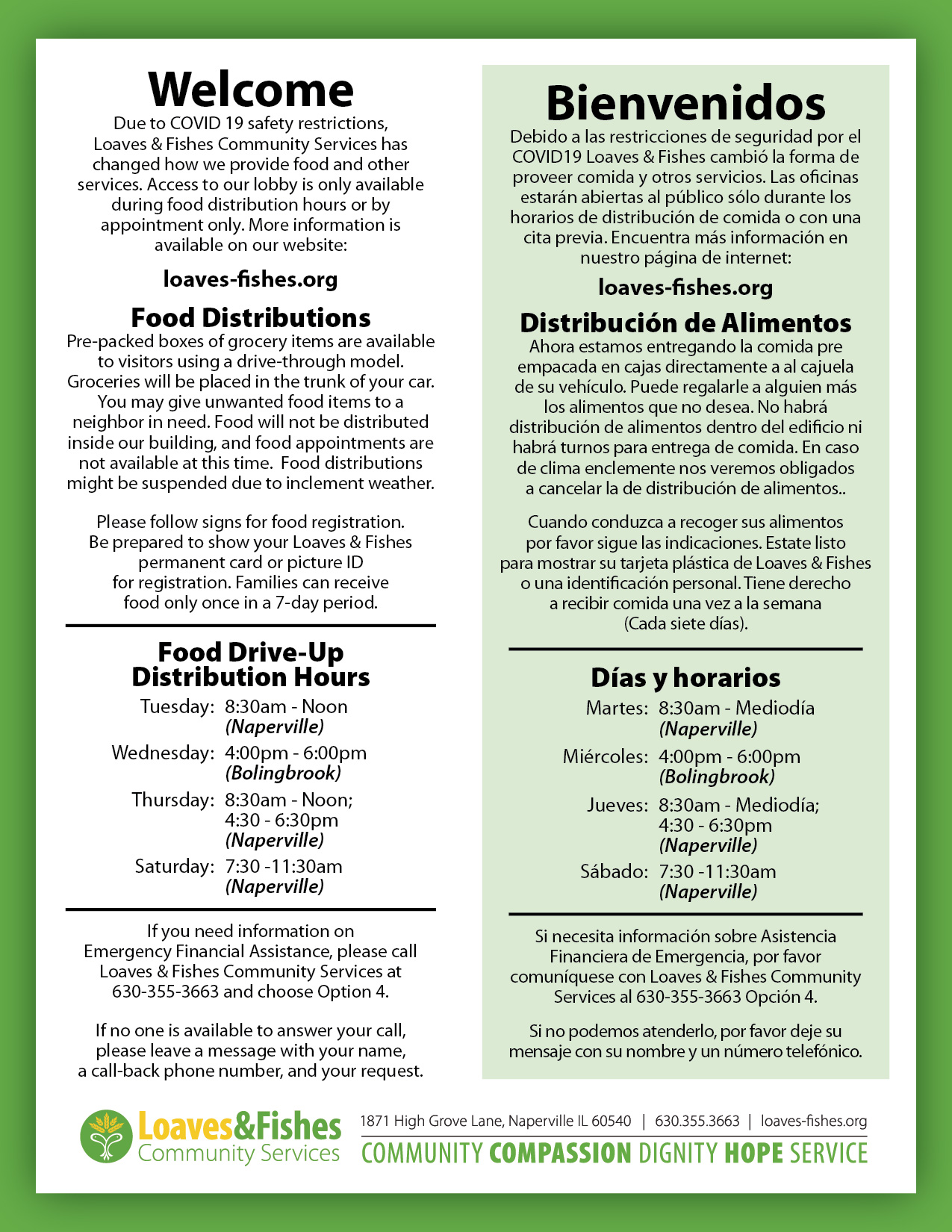Loaves & Fishes is committed to providing a safe environment for our clients, volunteers, employees and other people who visit our facilities. We are monitoring the coronavirus situation on a daily basis, and responding accordingly.