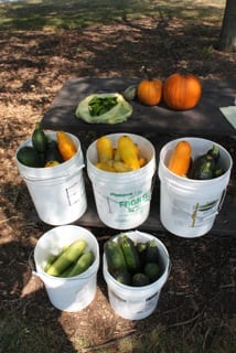 But as rewarding was the amount of veggies harvested and gleaned from the donation stand: 112 pounds–our single highest daily amount for the year! This brings our total delivered to Loaves & Fishes this year to 470+ pounds. Thank you all for a job well done!
