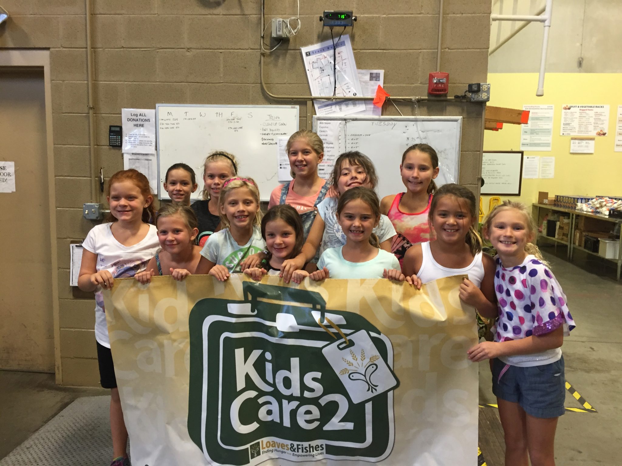 It is late on a Monday afternoon when the market and warehouse are quiet. Sorting and stocking volunteers have finished for the day, and there are no clients shopping. All is tranquil aside from two volunteers who are busy preparing for an hour of controlled chaos. The calm is interrupted as 12 bubbling girls filter into the waiting area, excited for the opportunity to join the fun that Loaves & Fishes’ volunteers experience on a daily basis. And there is no one better to navigate this adventure than Patrice and Jim Lia, long-time volunteers, who helped bring the Kids Care2 initiative to life.