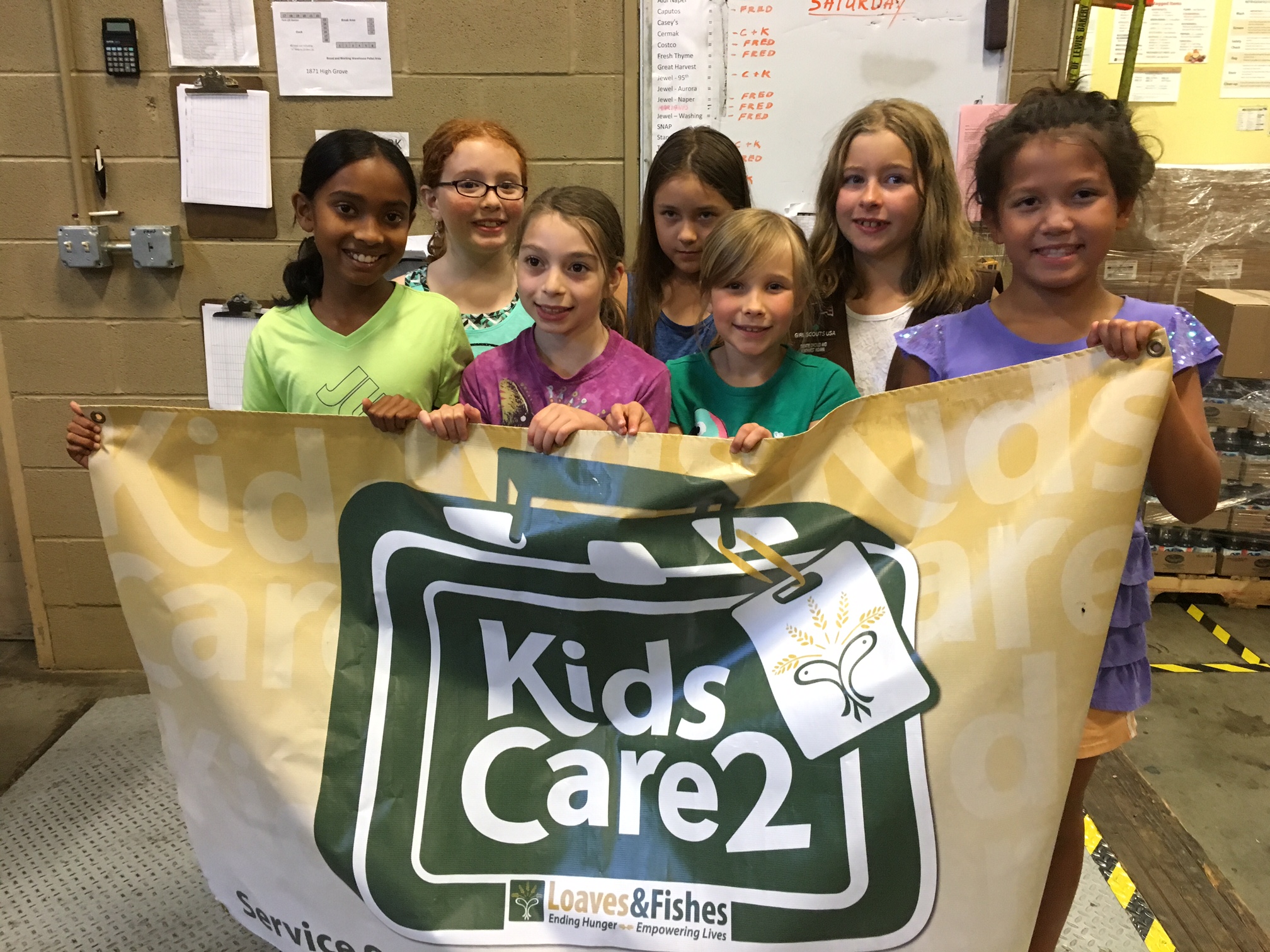 The genesis of Kids Care2 began in 2013 with a simple question from the Lia’s grandchildren, “What do you do at Loaves and Fishes?” Patrice and Jim decided immediately that they wanted to develop an opportunity for children to have a Loaves & Fishes experience. The first step was adding birthday parties in 2013 for kids between the ages of 6 to 12. The Lias lead interactive activities, such as a scavenger hunt, shopping spree and “Name that Food!” game, to entertain guests and promote education while parents supplied the party food and materials to deliver a memorable birthday experience. The pilot was a success, but there was still a need for accommodating larger groups that focused on service. By 2014, Kids Care2 was in full swing, offering kids ages 6+ an opportunity to get directly involved in Loaves & Fishes volunteer work in groups of 6-12. As the demand increased, the Lias expanded the initiative to Mondays and Fridays in order to welcome more scouts, troops, teams and youth groups who spend an hour doing hand-on activities that benefit the community.